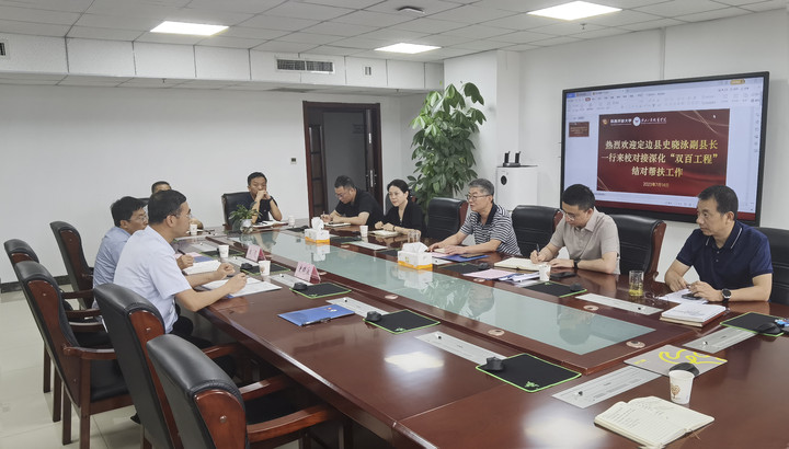7月14日,定边县人民政府史晓泳副县长一行来校对接“双百工程”结对帮扶工作。学校党委副书记刘锋出席座谈会,乡村振兴工作办公室、工会、团委、工商教务处、招生办公室、后勤管理处、管理学院、旅游与酒店管理学院、学前师范学院等有关单位负责人和专家参加座谈交流。