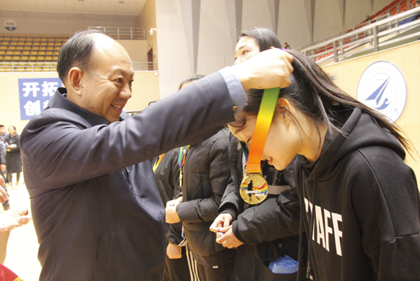 比赛中,球员们凭借扎实的基本功,充分发扬顽强拼搏、连续作战的精神,团结一致、密切配合、沉着应战。颁奖仪式上,省委教育工委书记董小龙、中国篮协副主席王立彬现场为获奖运动员颁奖,并与队员们合影留念。