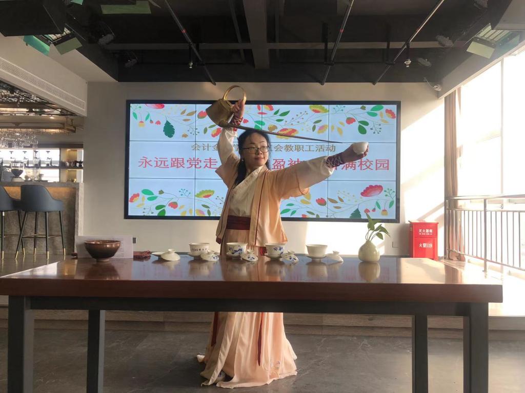 为深入学习贯彻习近平新时代中国特色社会主义思想,促进中华传统文化创新发展,丰富教职工业余生活,提升教职工审美情趣,增强团队凝聚力,11月10日下午,会计金融学院分工会举办了主题为“永远跟党走 花香透盈袖 茶香满校园”的花艺品茗活动,校工会主席牛文娟参加活动。